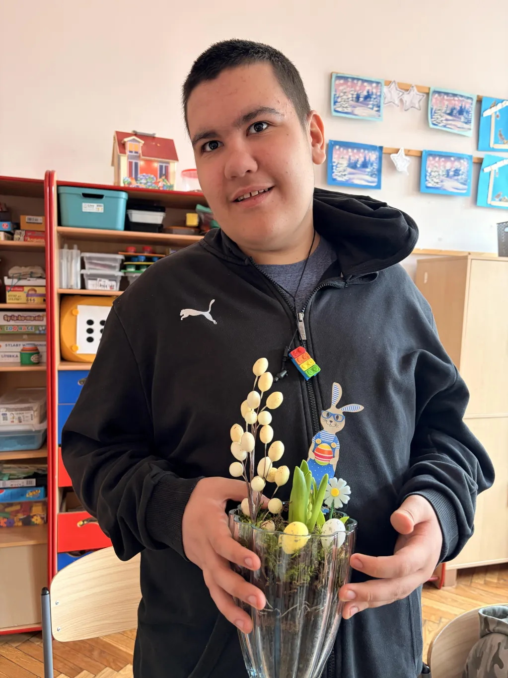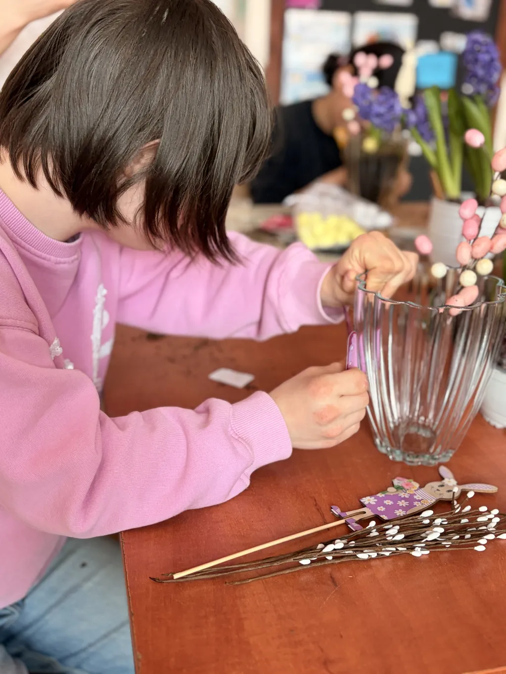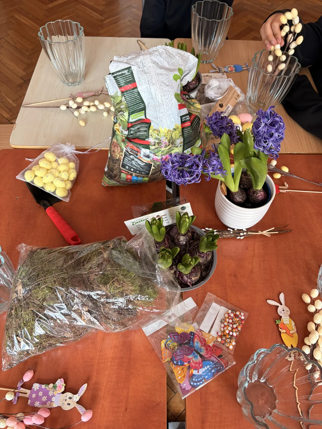 Obie klasy uczestniczyły również w warsztatach tworzenia stroików wielkanocnych, zorganizowanych przez wychowawców. Celem zajęć było zarówno pielęgnowanie tradycji, jak i rozwijanie kreatywności oraz integracji między uczniami. Dzieci z zaangażowaniem tworzyły świąteczne kompozycje, wykorzystując różnorodne materiały. Efekty ich pracy okazały się niezwykle pomysłowe, a wykonane stroiki z pewnością staną się piękną ozdobą wielkanocnych stołów.