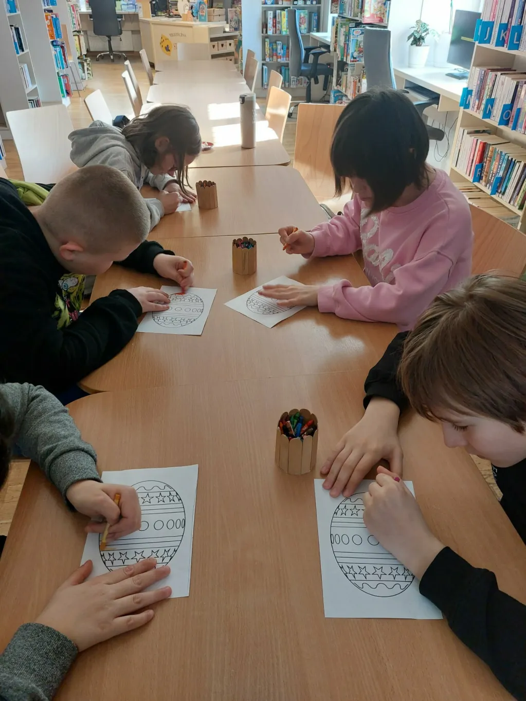 Podczas zajęć dzieci obejrzały prezentację multimedialną, zapoznały się z literaturą poświęconą zwyczajom wielkanocnym, a następnie wzięły udział w warsztatach plastycznych, podczas których samodzielnie wykonały urocze zajączki wielkanocne. Regularne wizyty w bibliotece rozwijają kulturę czytelniczą uczniów, uczą ich samodzielnego korzystania z zasobów bibliotecznych oraz wspierają rozwój zainteresowań literackich. To zawsze wyjątkowy czas, spędzony w twórczej i przyjaznej atmosferze.
