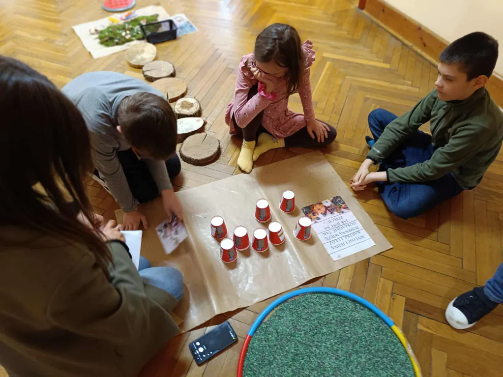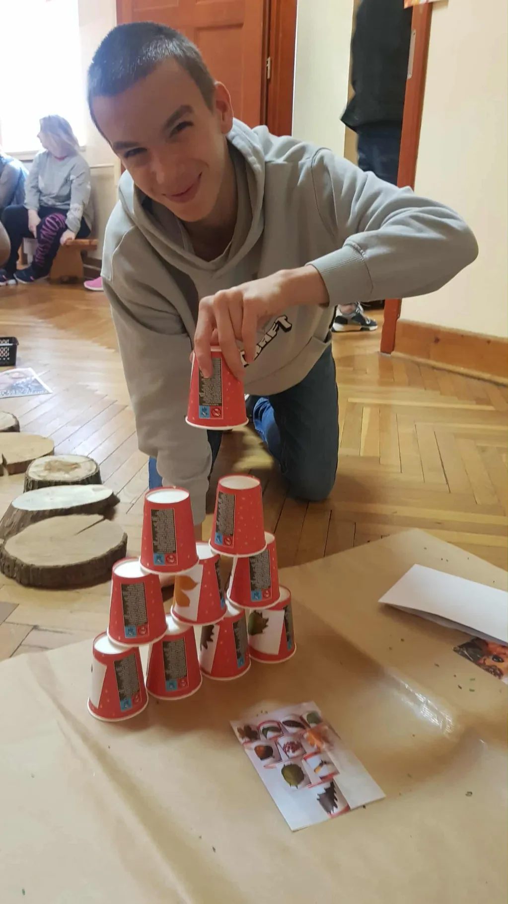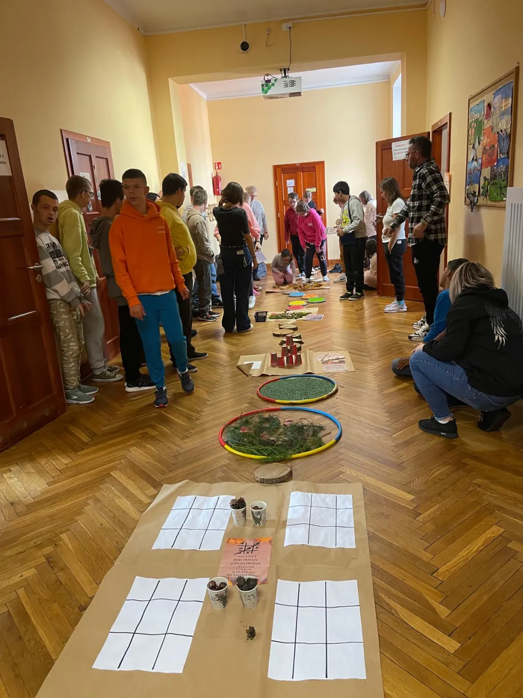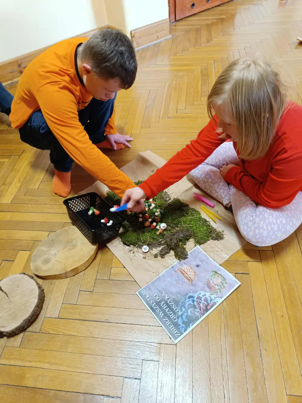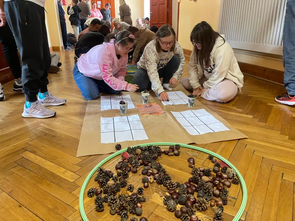 - grały w kółko i krzyżyk z wykorzystaniem szyszek i kasztanów,