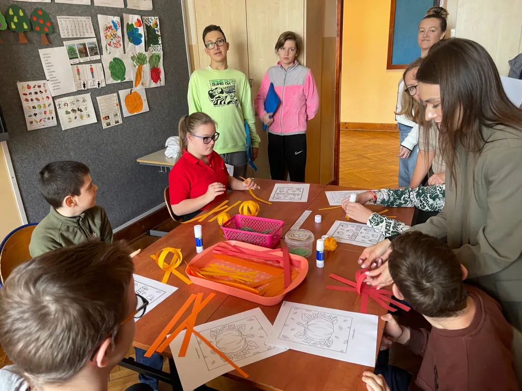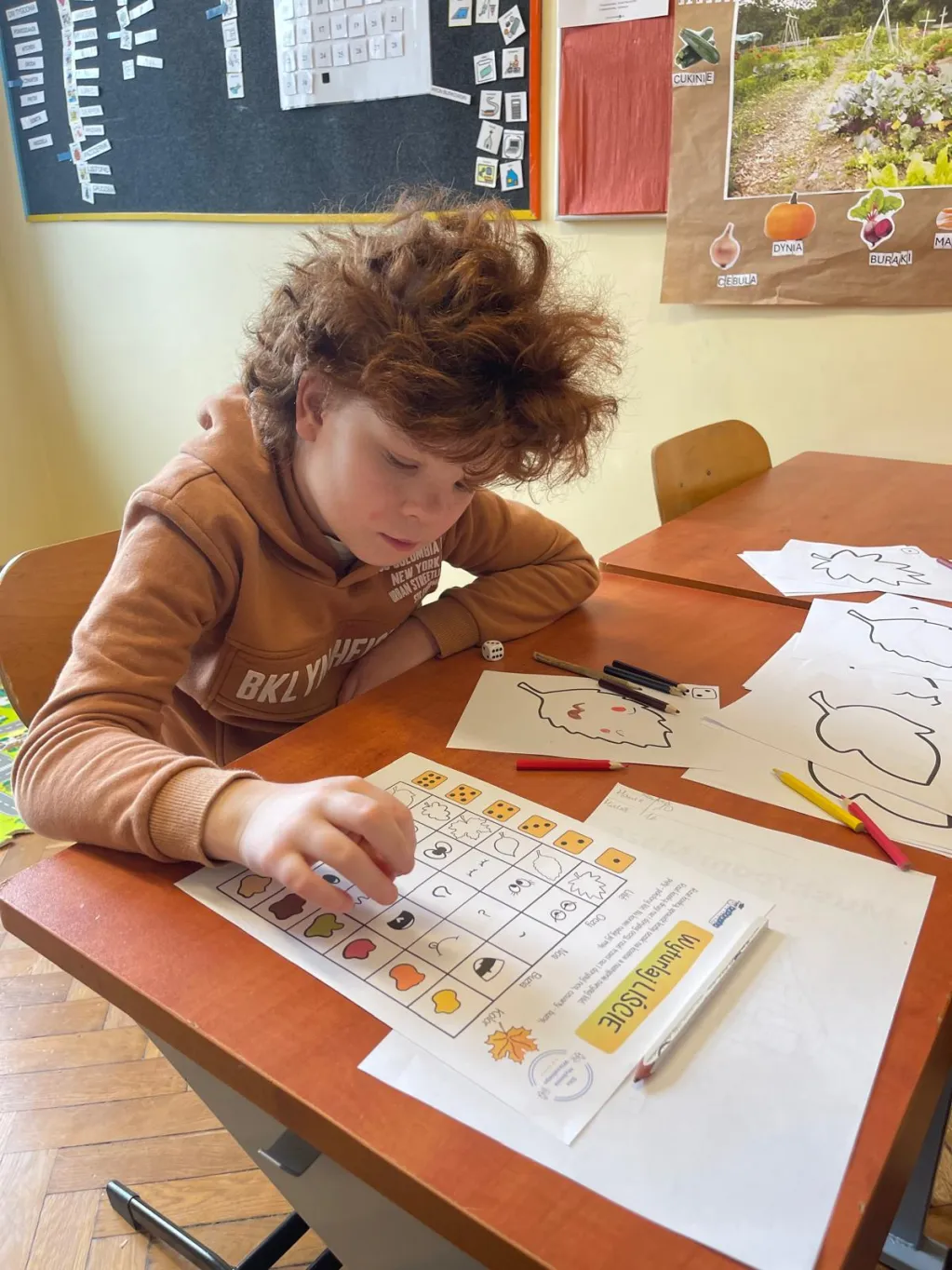 Nie zabrakło również aktywności plastycznych – uczniowie wykonali własnoręcznie dynie, nauczyli się dyniowego wierszyka oraz rozegrali tematyczną grę planszową.