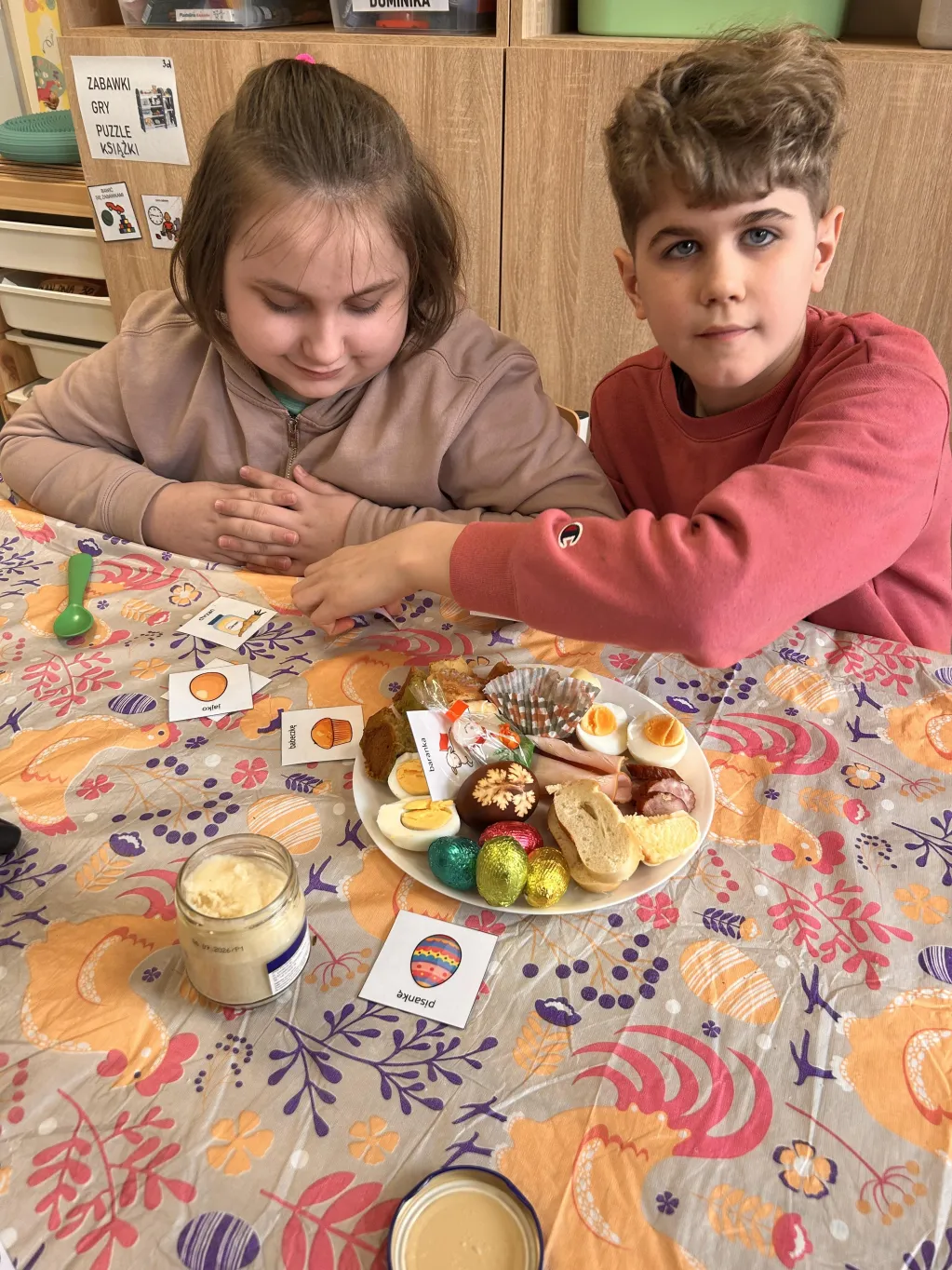Zajęcia poświęcone tradycji koszyka wielkanocnego to doskonały sposób na połączenie edukacji regionalnej, sensoryki oraz nauki symboliki. Lekcja była poświęcona poznawaniu smaków z wielkanocnego koszyka poprzez zmysły. Przy pomocy nauczyciela dzieci przyszykowały wielkanocny koszyk. Do dyspozycji miały: serwetkę, sól, pieprz, chrzan, jajka, pisanki, baranka z cukru, kromkę chleba, kawałek kiełbaski, szynkę i babeczki. Dzieci odkrywały zawartość koszyka, a następnie przystąpiły do degustacji.
