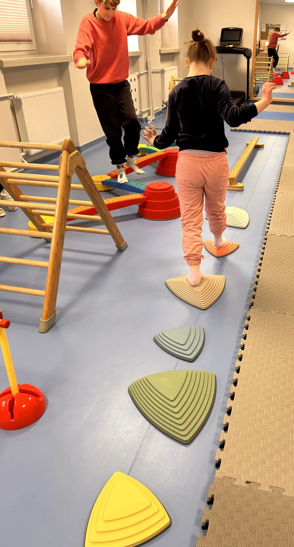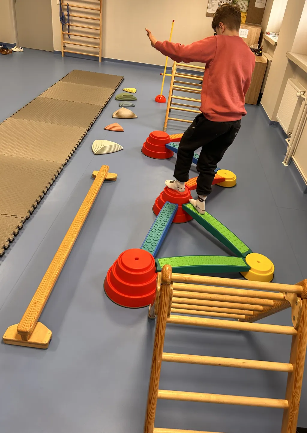 Lekcja wychowania fizycznego oparta na torze przeszkód to świetny sposób na rozwijanie równowagi. Dzieci uczyły się kontroli nad własnym ciałem poprzez zabawę.