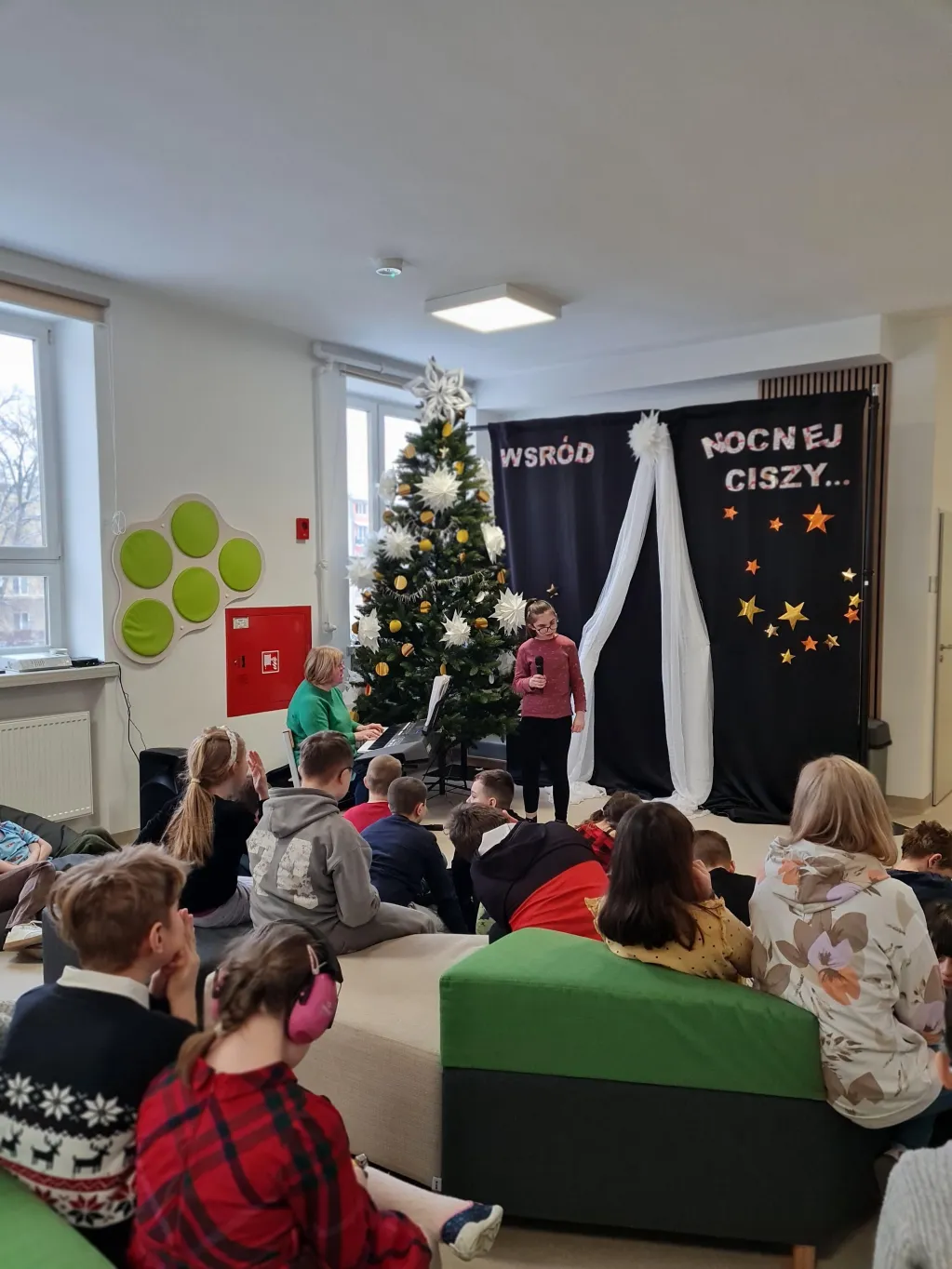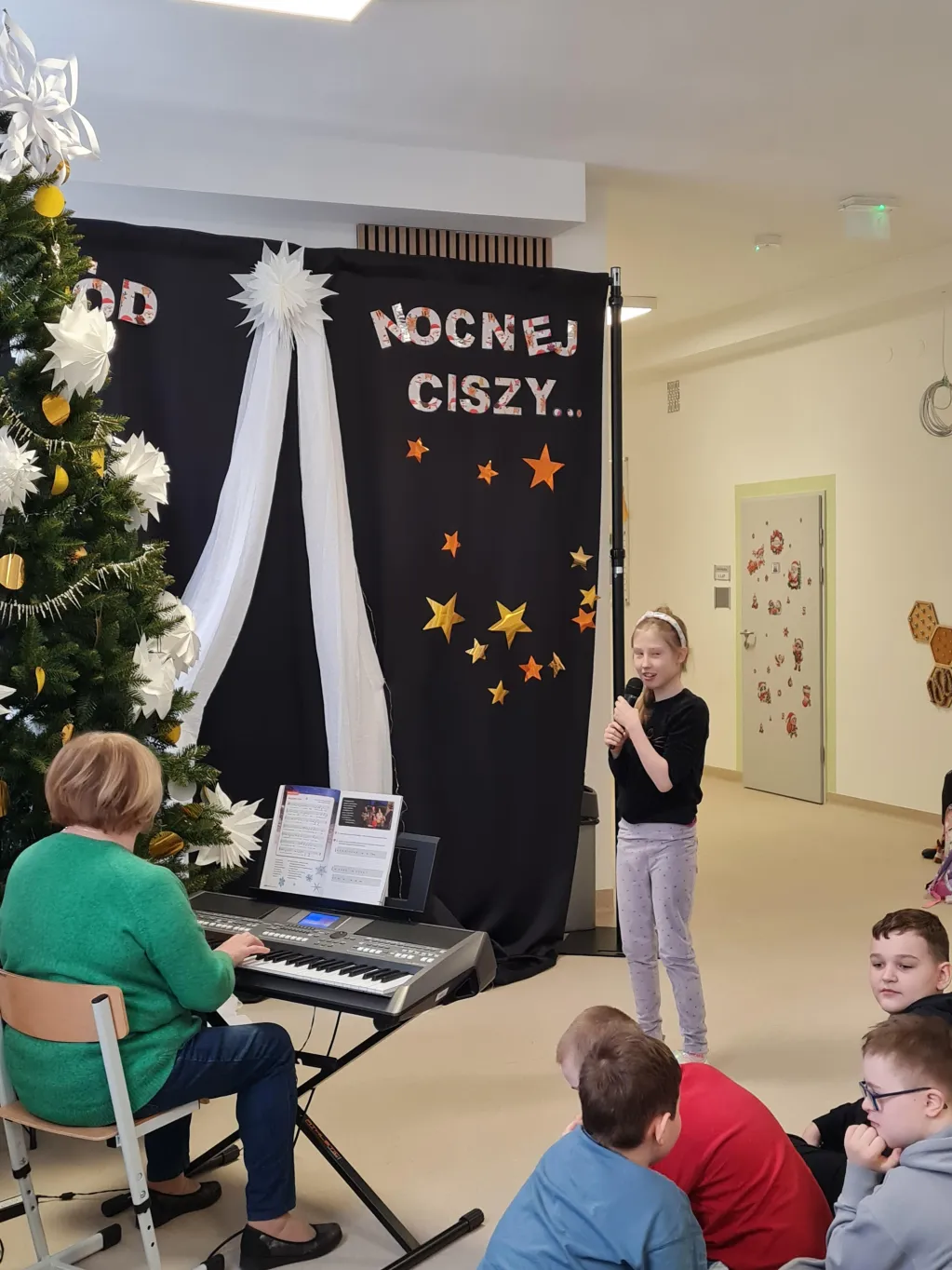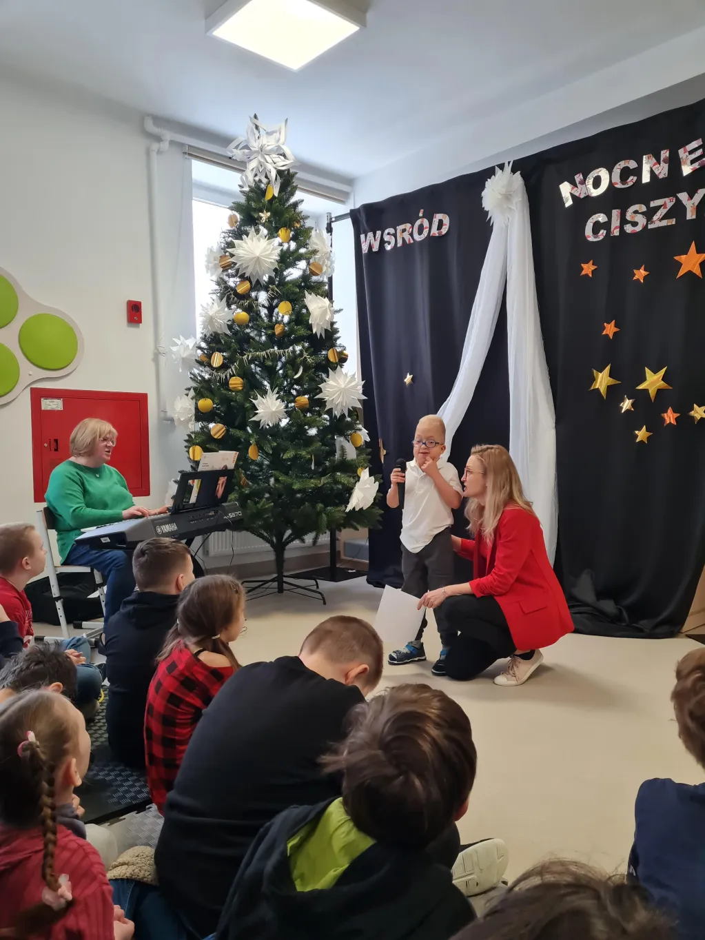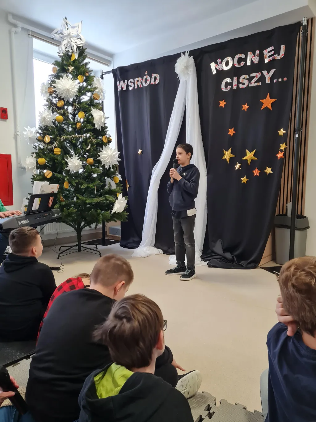 Choć świąteczny czas już za nami, uczniowie klas 1–3 przygotowali piękny, pełen ciepła występ, podczas którego zaprezentowali kolędy i pastorałki. Występ był niezwykłą okazję do wspólnego przeżycia jeszcze odrobiny świątecznej atmosfery. Dzieci śpiewały przy akompaniamencie muzycznym, poprowadzonym przez Panią Krystynę Skadorwę, która czuwała nad przygotowaniem młodych artystów.
