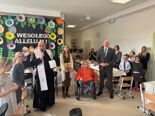 Gościem na śniadaniu był ksiądz proboszcz z parafii św. Klemensa, który poświęcił szkołę i odmówił ze wszystkimi zebranymi modlitwę.