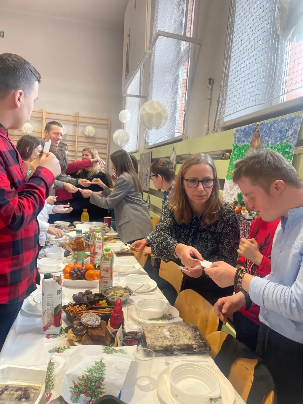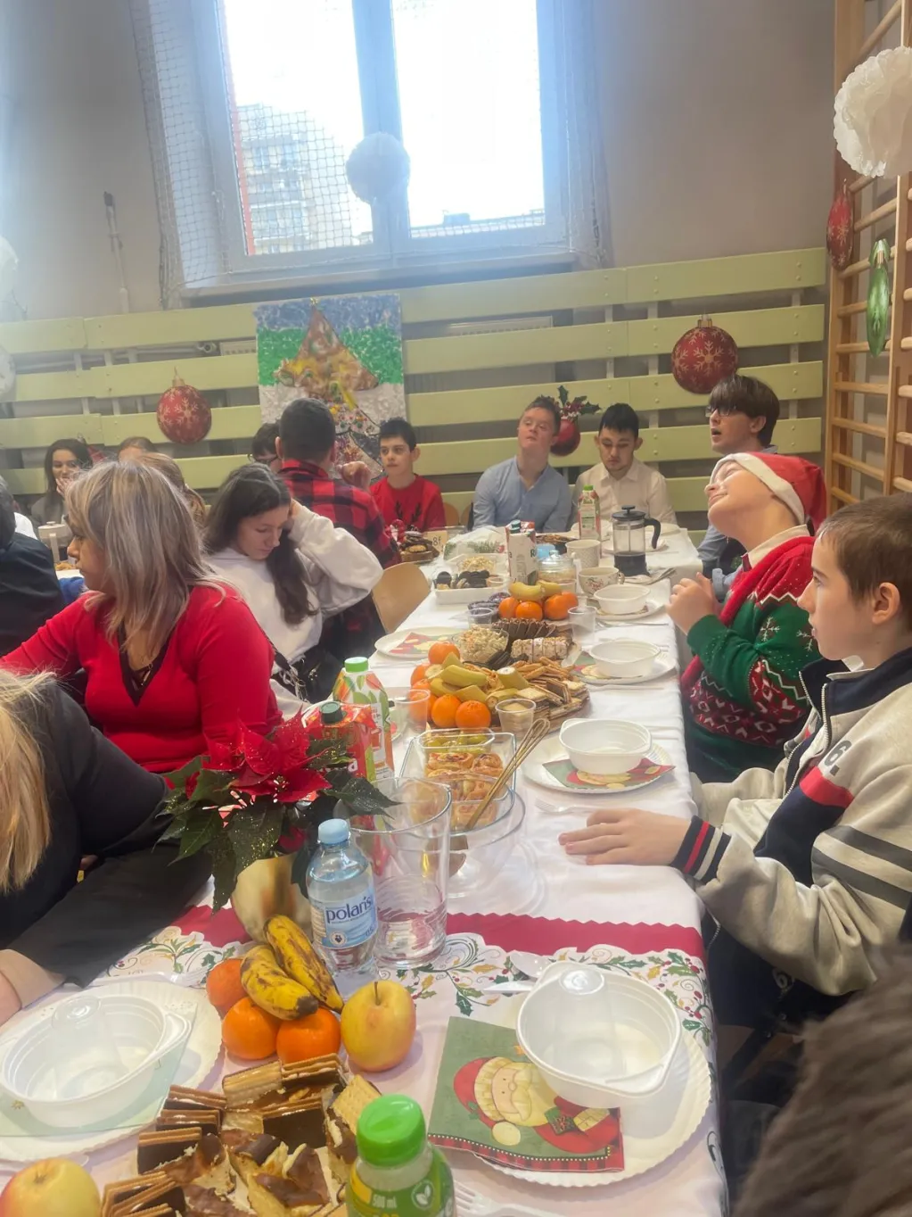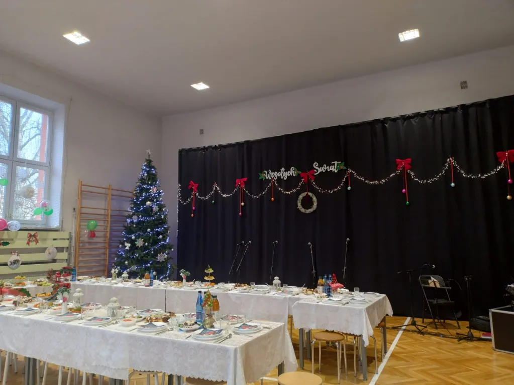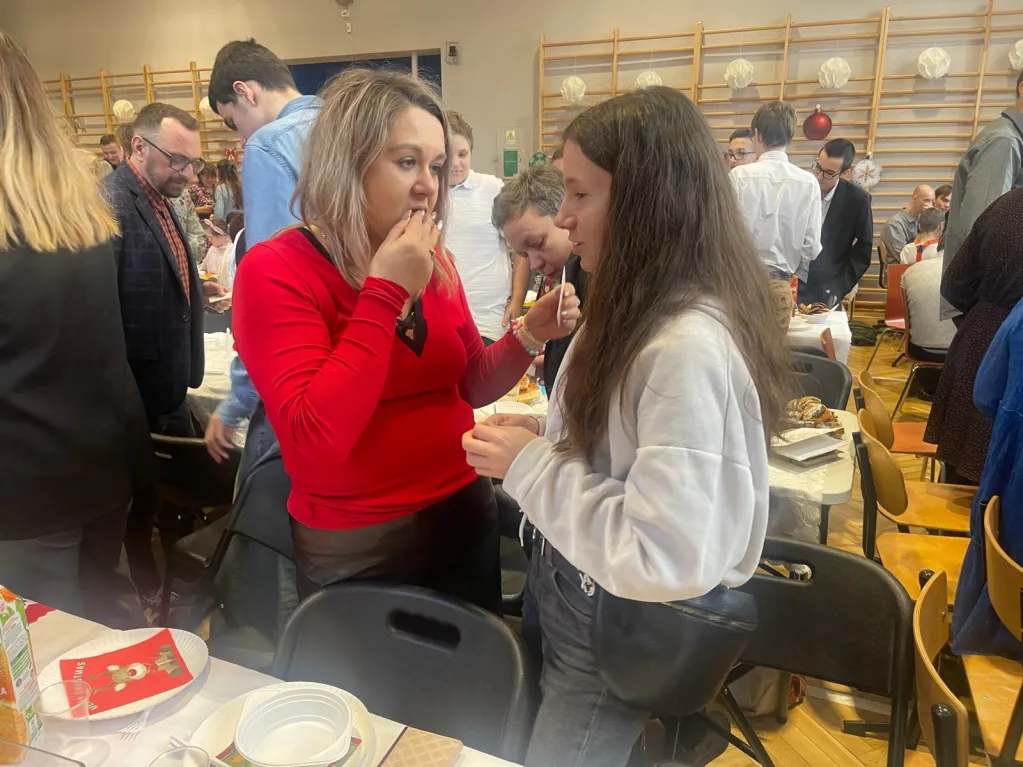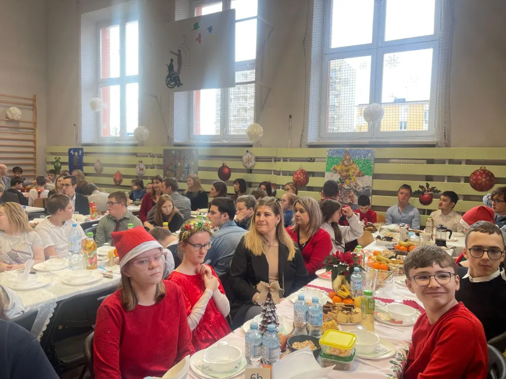 O świąteczną atmosferę i pyszne smaki zadbała szkolna kuchnia, przygotowując wiele tradycyjnych, wigilijnych potraw. Spotkanie uświetnił występ szkolnego chóru, który zaprezentował piękne pastorałki oraz tradycyjne kolędy, wprowadzając wszystkich w wyjątkowy, bożonarodzeniowy nastrój.