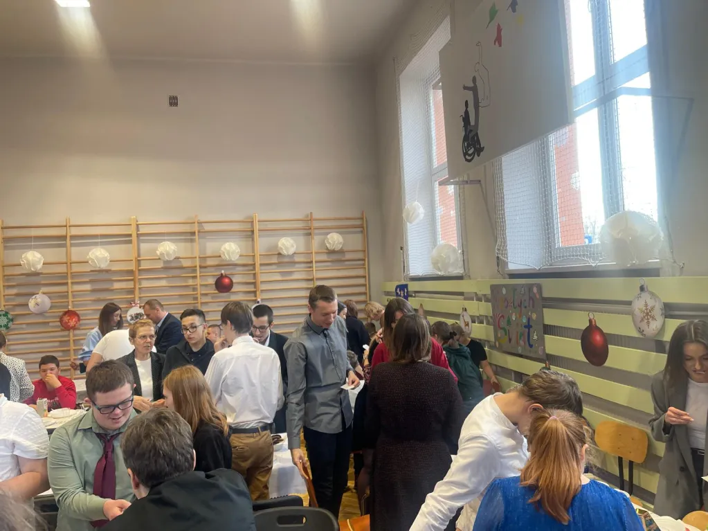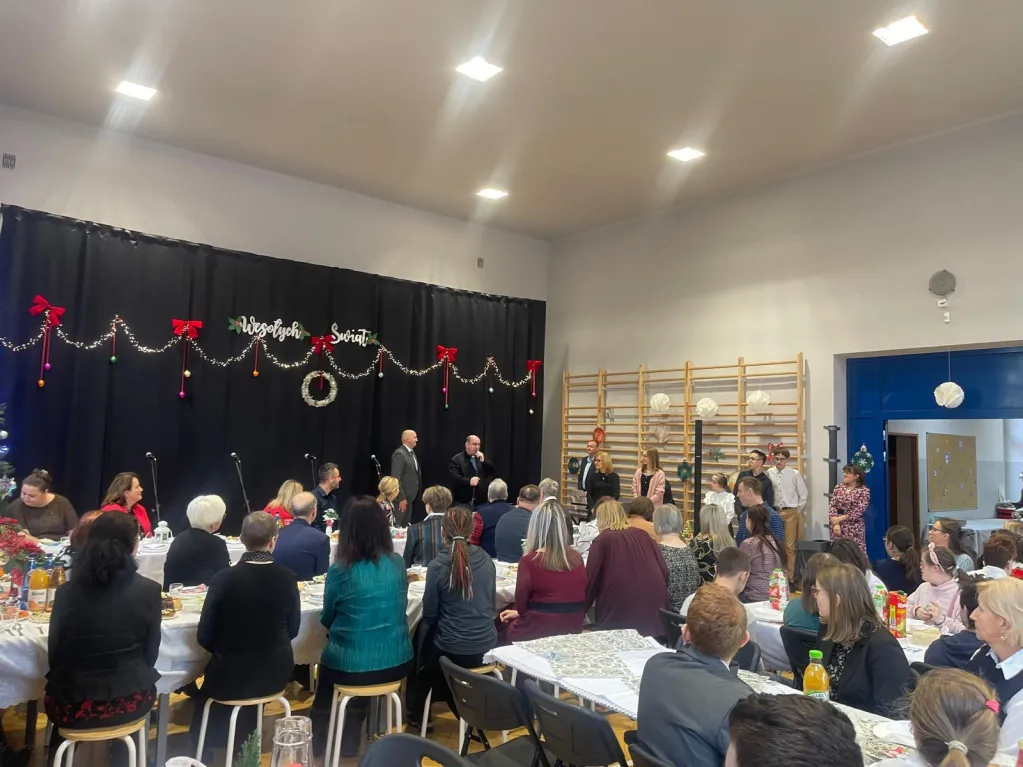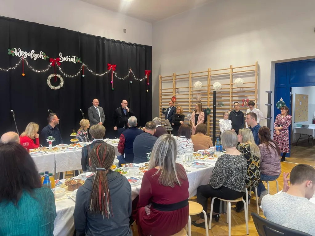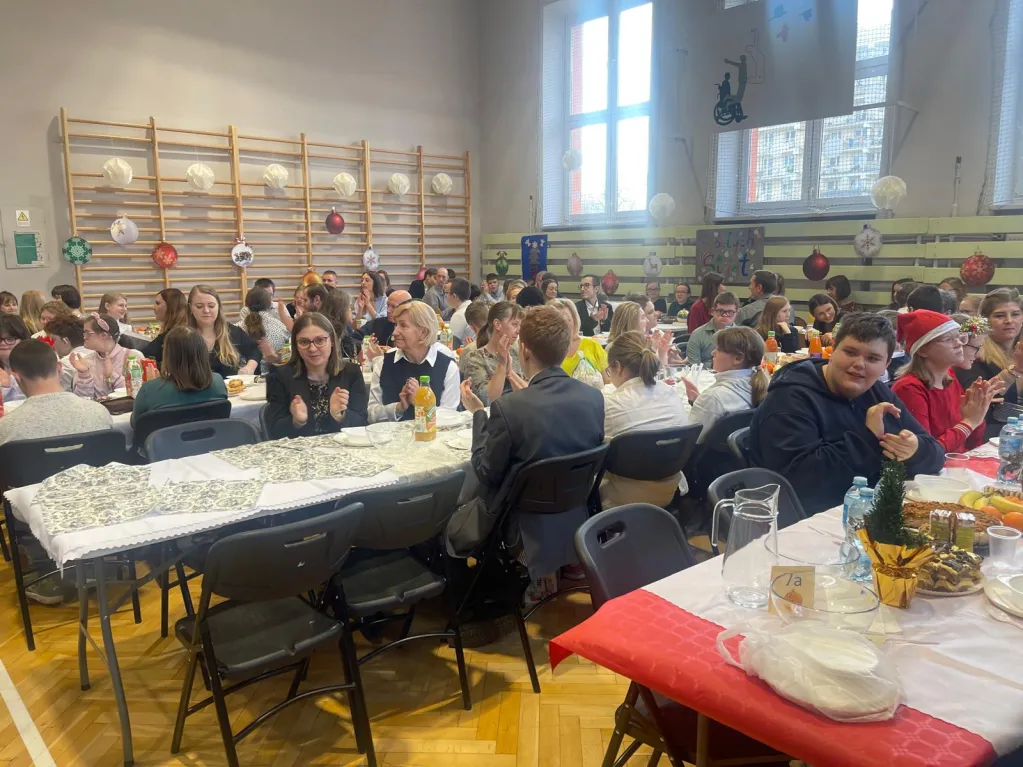 19 grudnia 2025 r. w naszej szkole odbyła się uroczysta Wigilia, która zgromadziła całą społeczność szkolną. Wspólnie świętowali nauczyciele, uczniowie, pracownicy administracji i obsługi, a także zaproszeni emerytowani nauczyciele i pracownicy szkoły, ksiądz proboszcz parafii św. Klemensa oraz przedstawiciele Rady Rodziców.