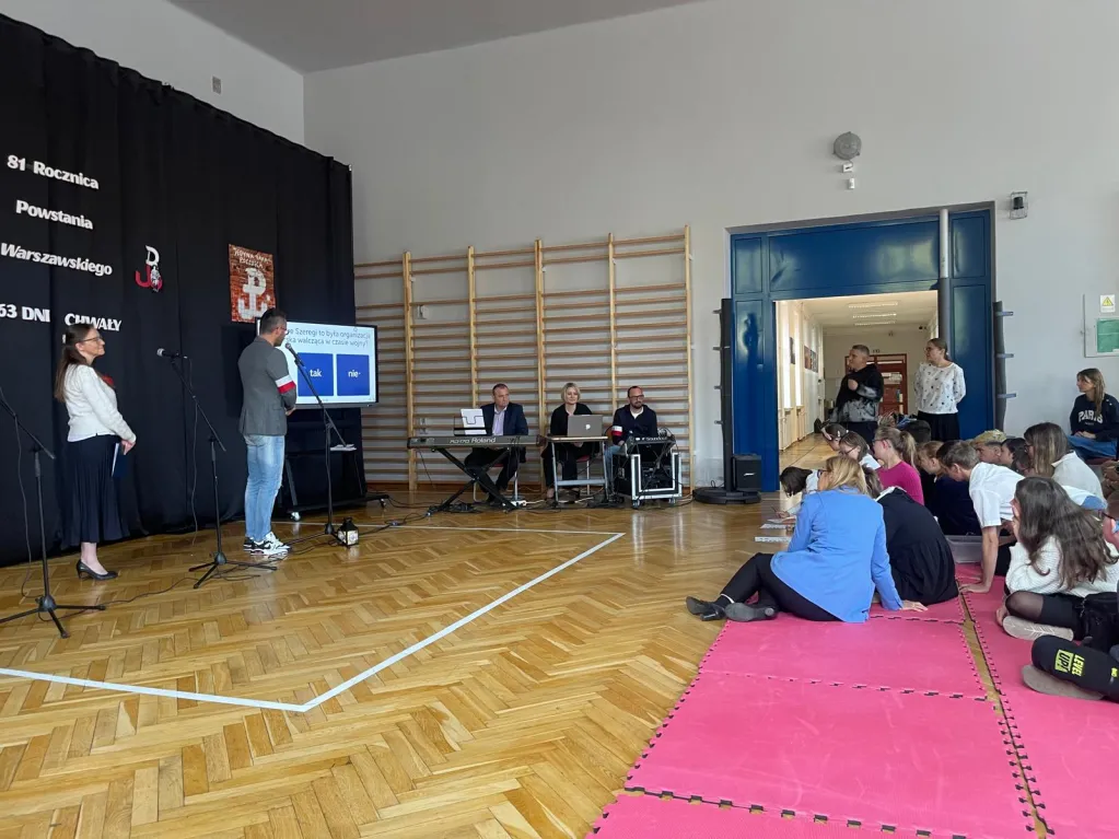 Kolejnym punktem programu był interaktywny quiz wiedzy historycznej, który w angażujący sposób sprawdził znajomość faktów związanych z Powstaniem Warszawskim. Uczniowie wykazali się dużą wiedzą i zaangażowaniem.