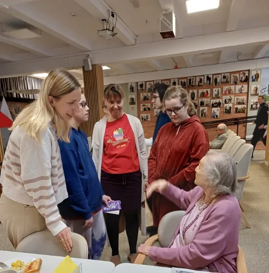 W dniu 5 grudnia 25 r., delegacja uczniów i nauczycieli naszej szkoły odwiedziła Powstańców w Domu Powstańców Warszawskich, celem naszej wizyty było przekazanie kartek świątecznych i słodkiego upominku oraz osobiste złożenie życzeń z okazji zbliżających się Świąt Bożego Narodzenia. Zostaliśmy przyjęci z radością i serdecznością, zarówno przez Powstańców oraz pracowników DPW. Na profilu społecznościowym Facebook, Dom Powstańców Warszawskich zamieścił miły wpis i podziękowanie dla naszej szkoły. Fundatorem słodkości była Pani Katarzyna Tosik-Kowalczyk.