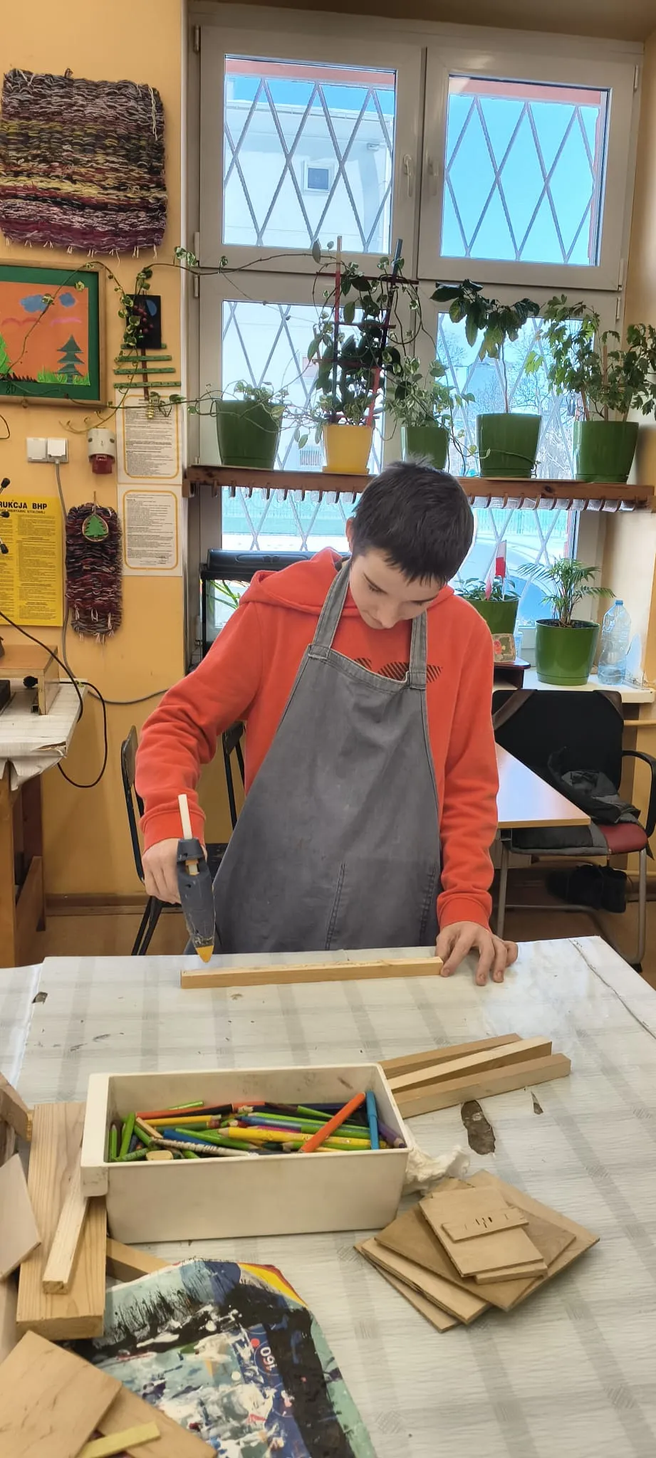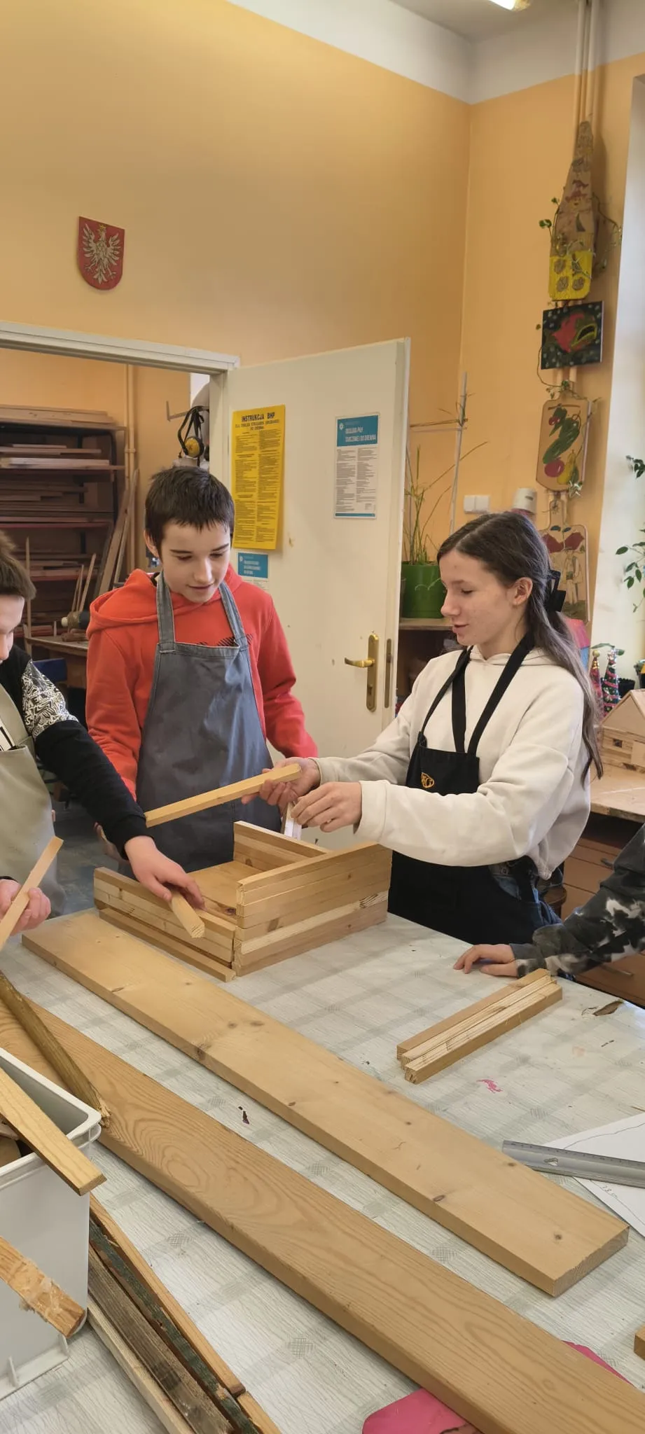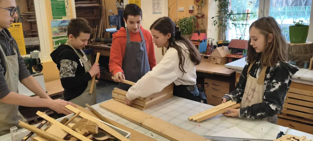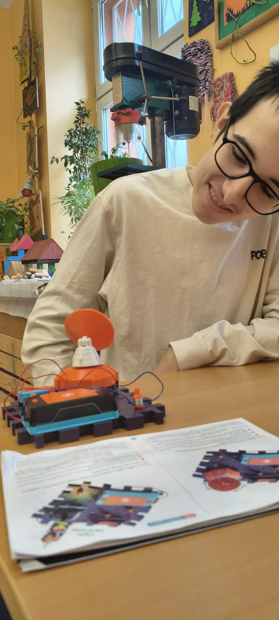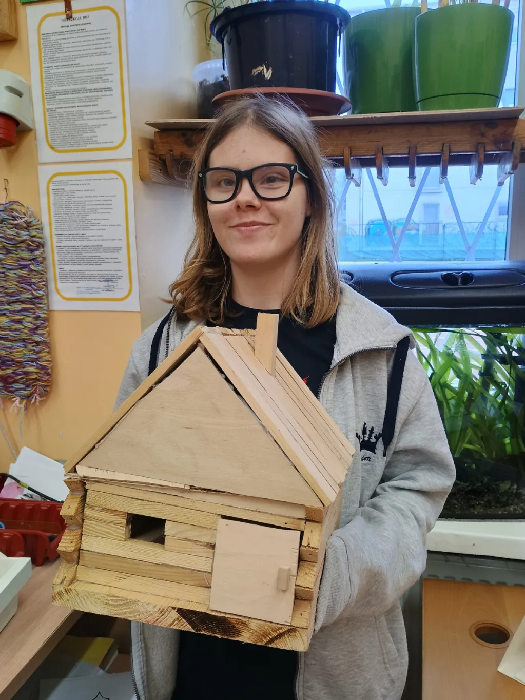 Na zajęciach Techniki oraz Zajęciach Rozwijających Kreatywność prowadzonych przez pana Bogusia realizujemy wiele interesujących projektów. Głównym obszarem naszej pracy jest obróbka drewna – uczymy się posługiwania różnorodnymi narzędziami oraz poznajemy zasady bezpiecznej i precyzyjnej pracy. Oprócz tego wykonujemy także inne twórcze zadania: tworzymy dywaniki, sadzimy kwiaty i warzywa, opiekujemy się akwarium oraz jego mieszkańcami. Budujemy góralskie domki i przygotowujemy ozdobne breloki z drewna. Każde zajęcia stanowią okazję do rozwijania naszych umiejętności manualnych, kreatywności i wyobraźni.