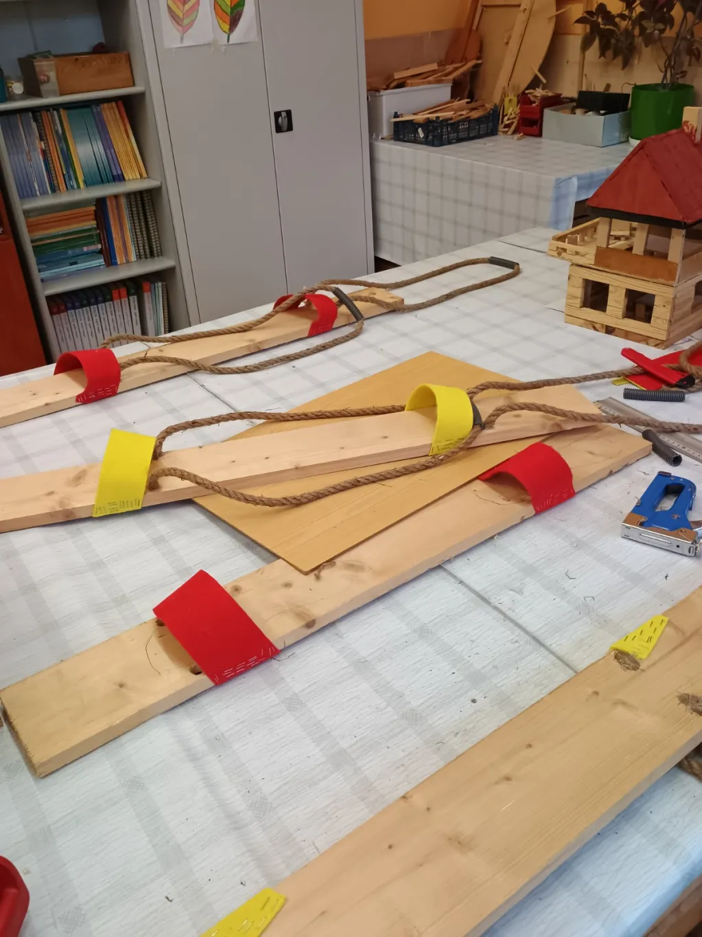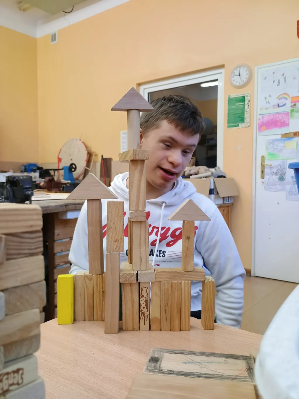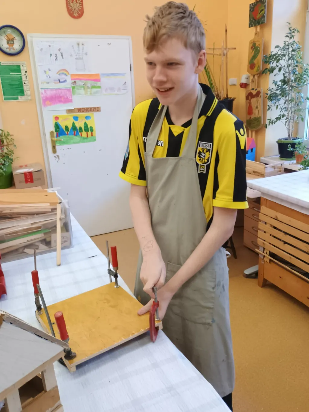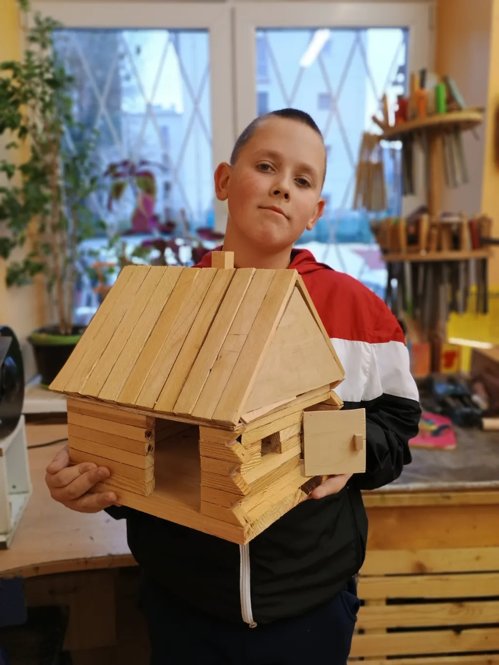 Na zajęciach Techniki oraz Zajęciach Rozwijających Kreatywność prowadzonych przez pana Bogusia realizujemy wiele interesujących projektów. Głównym obszarem naszej pracy jest obróbka drewna – uczymy się posługiwania różnorodnymi narzędziami oraz poznajemy zasady bezpiecznej i precyzyjnej pracy. Oprócz tego wykonujemy także inne twórcze zadania: tworzymy dywaniki, sadzimy kwiaty i warzywa, opiekujemy się akwarium oraz jego mieszkańcami. Budujemy góralskie domki i przygotowujemy ozdobne breloki z drewna. Każde zajęcia stanowią okazję do rozwijania naszych umiejętności manualnych, kreatywności i wyobraźni.