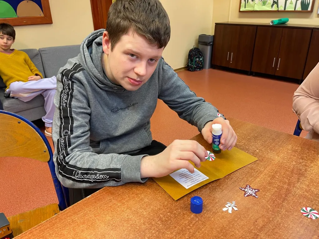 W świątecznej atmosferze uczniowie świetlicy wzięli udział w kreatywnych zajęciach, podczas których własnoręcznie tworzyli kartki bożonarodzeniowe metodą scrapbookingu.