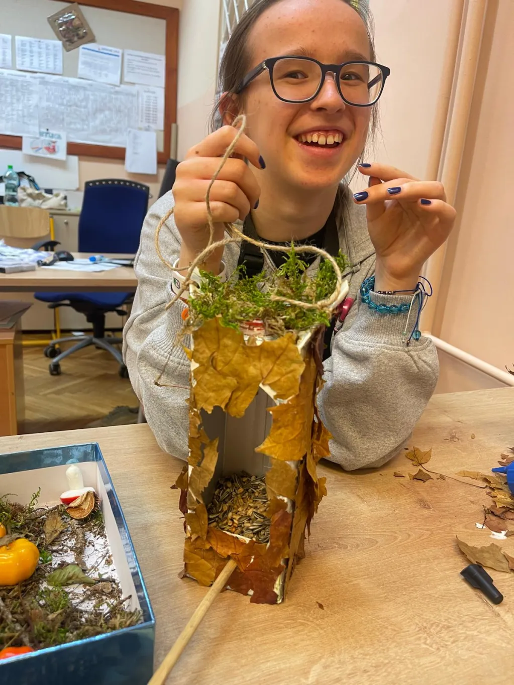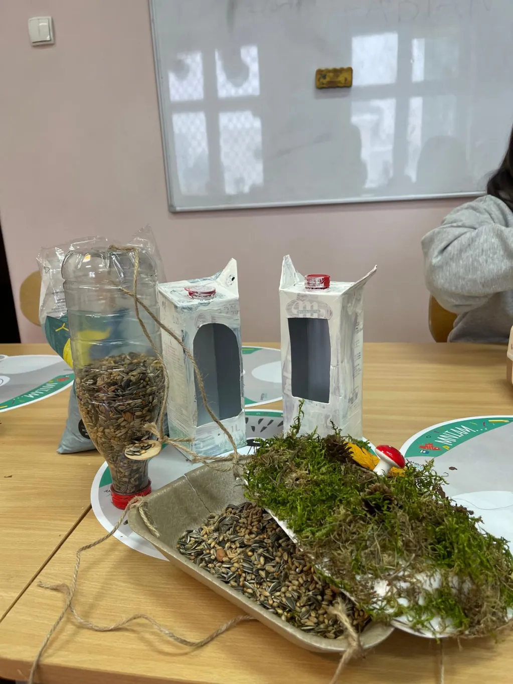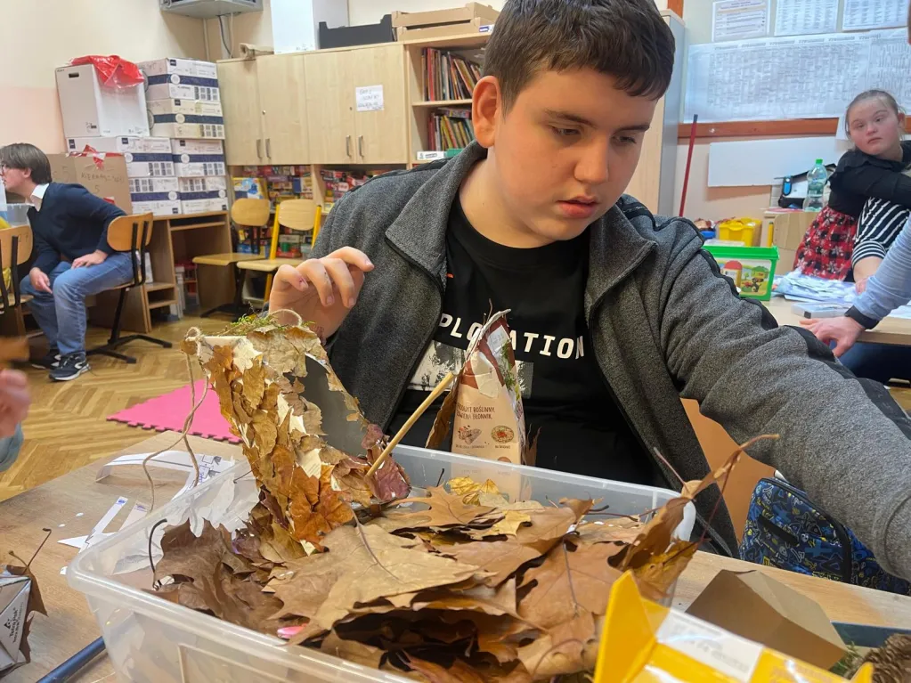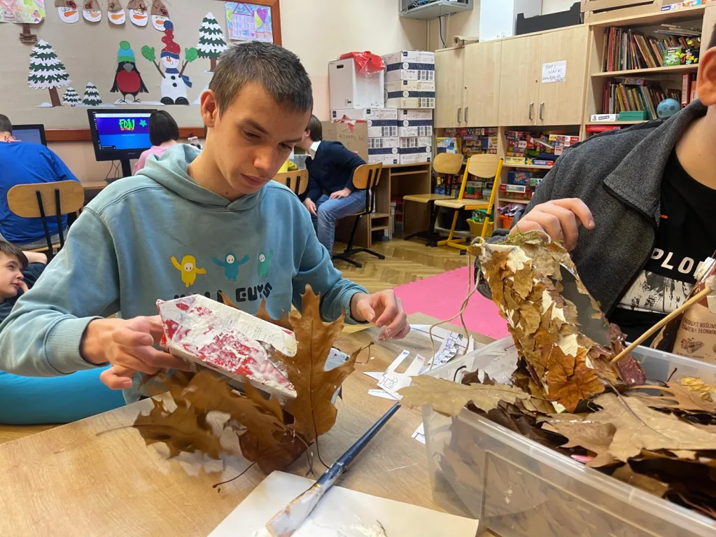 W ramach zajęć plastyczno‑technicznych wykonali karmniki z materiałów pochodzących z recyklingu, ucząc się przy tym troski o środowisko oraz odpowiedzialności za najmniejszych mieszkańców naszego otoczenia.