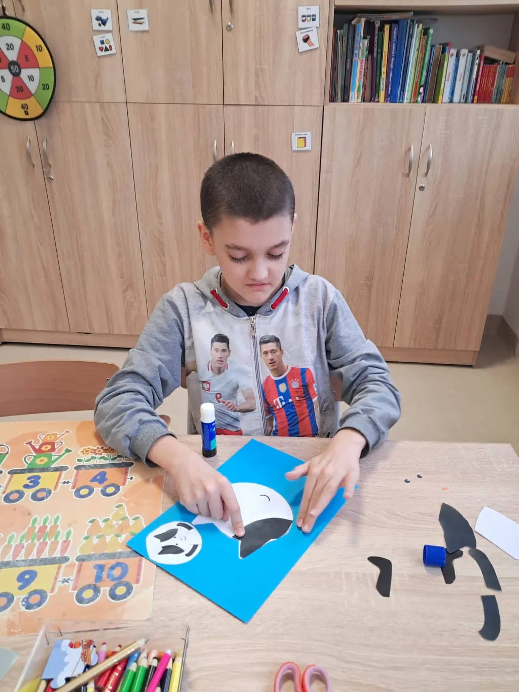 W części plastycznej dzieci wykonały ruchome karty 3D z motywem psa, wykazując się dużą kreatywnością i starannością. Gotowe prace zostały zaprezentowane na wystawie w świetlicy.